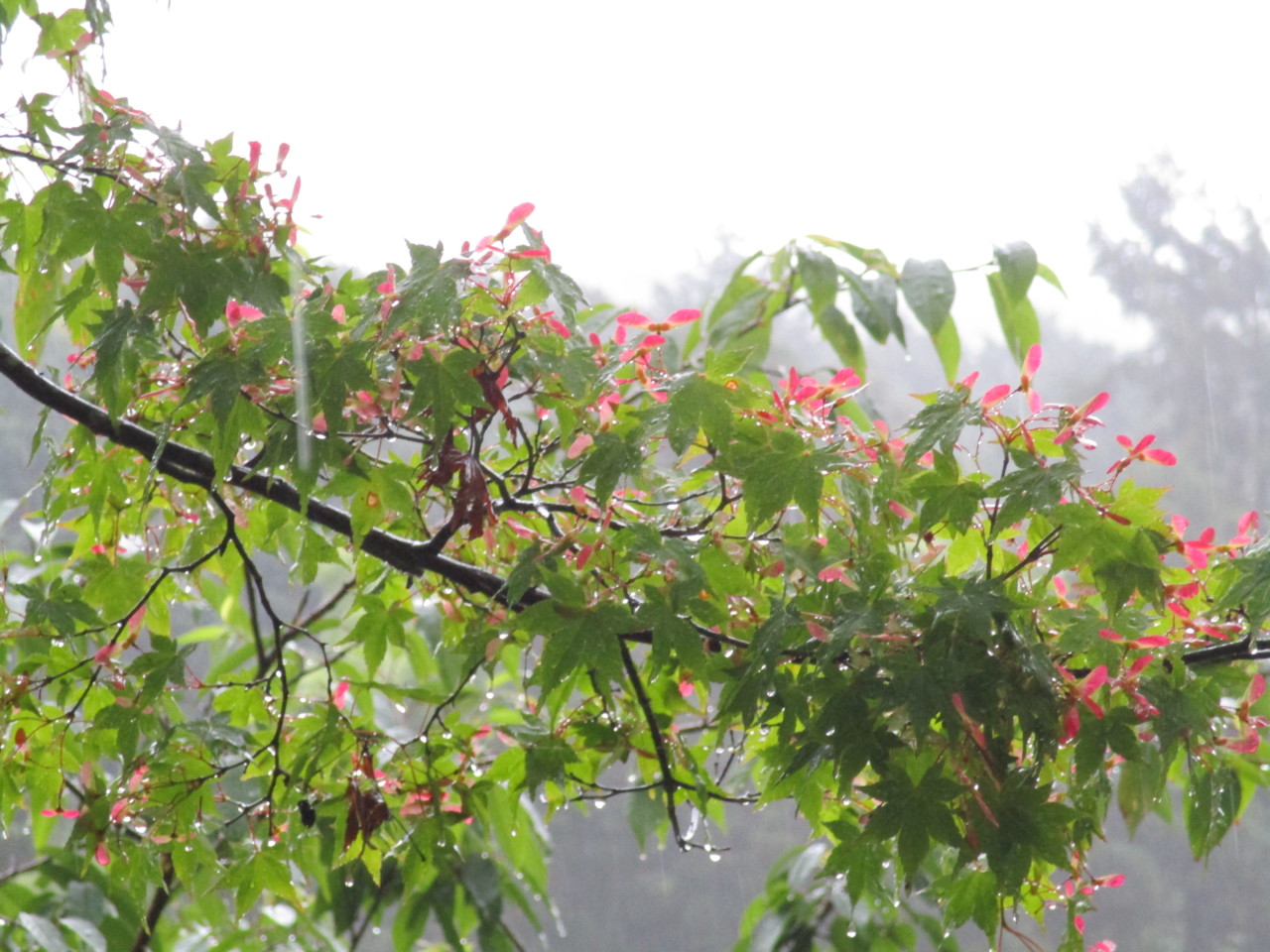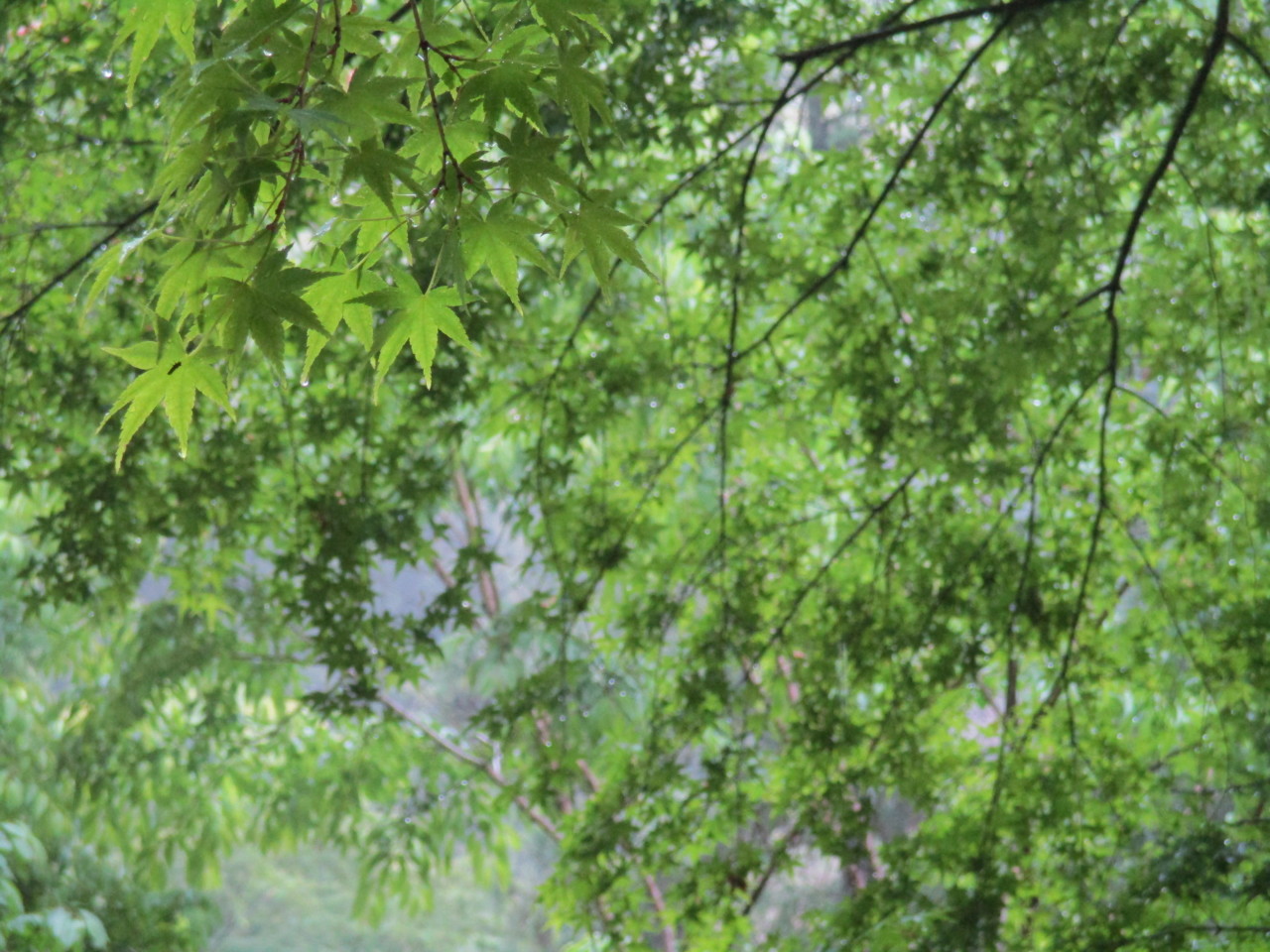 紅葉が雨に濡れてとても綺麗でした。晴れて鮮やかな新緑も綺麗ですが、雨に濡れた新緑も美しいなと感じました。